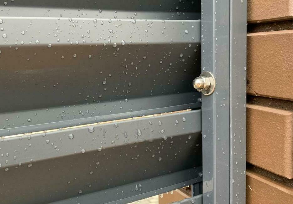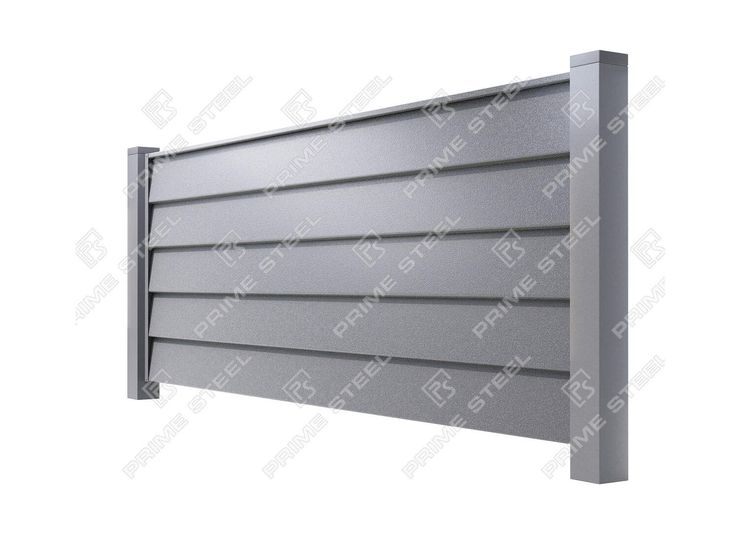 Стандартный тип конструкции забора-жалюзи. Проветриваемый и просматриваемый со стороны двора. Все элементы выполнены из оцинкованной стали с полимерным покрытием.